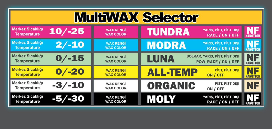 Bu dereceler, wax'ın optimal performans gösterdiği sıcaklık aralıklarını temsil eder. Ancak kayak koşulları değişken olabilir, bu yüzden birçok kayakçı, sıcaklık aralıkları arasında kalan wax'ları karıştırarak veya ayarlayarak daha spesifik koşullara uyacak şekilde wax'larını seçer. Ayrıca, bazı çok yönlü veya üniversal wax'lar da mevcuttur, bu da geniş bir sıcaklık aralığında kabul eder performans sunar. MultiWAX, ürünlerini yukarıda belirtilen standartlar dışında tutarak tüm ürünlerinde geniş sıcaklık ve kar koşullarına adapte olabilen Nano-Tech Self Adaptive kayak ve snowboard waxları üretir.